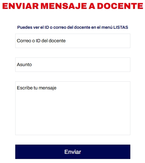 para ver sus matrículas ingresa en MENSAJES/Ver/Lista de grupo o el ID de los docentes en MENSAJES/Ver/Lista de maestr@s